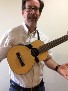Put your right arm and head through the sling, so that the strap comes to rest on your left shoulder.